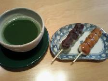 適当に座ってアンケを書いているとお茶とお団子が運ばれてきました。